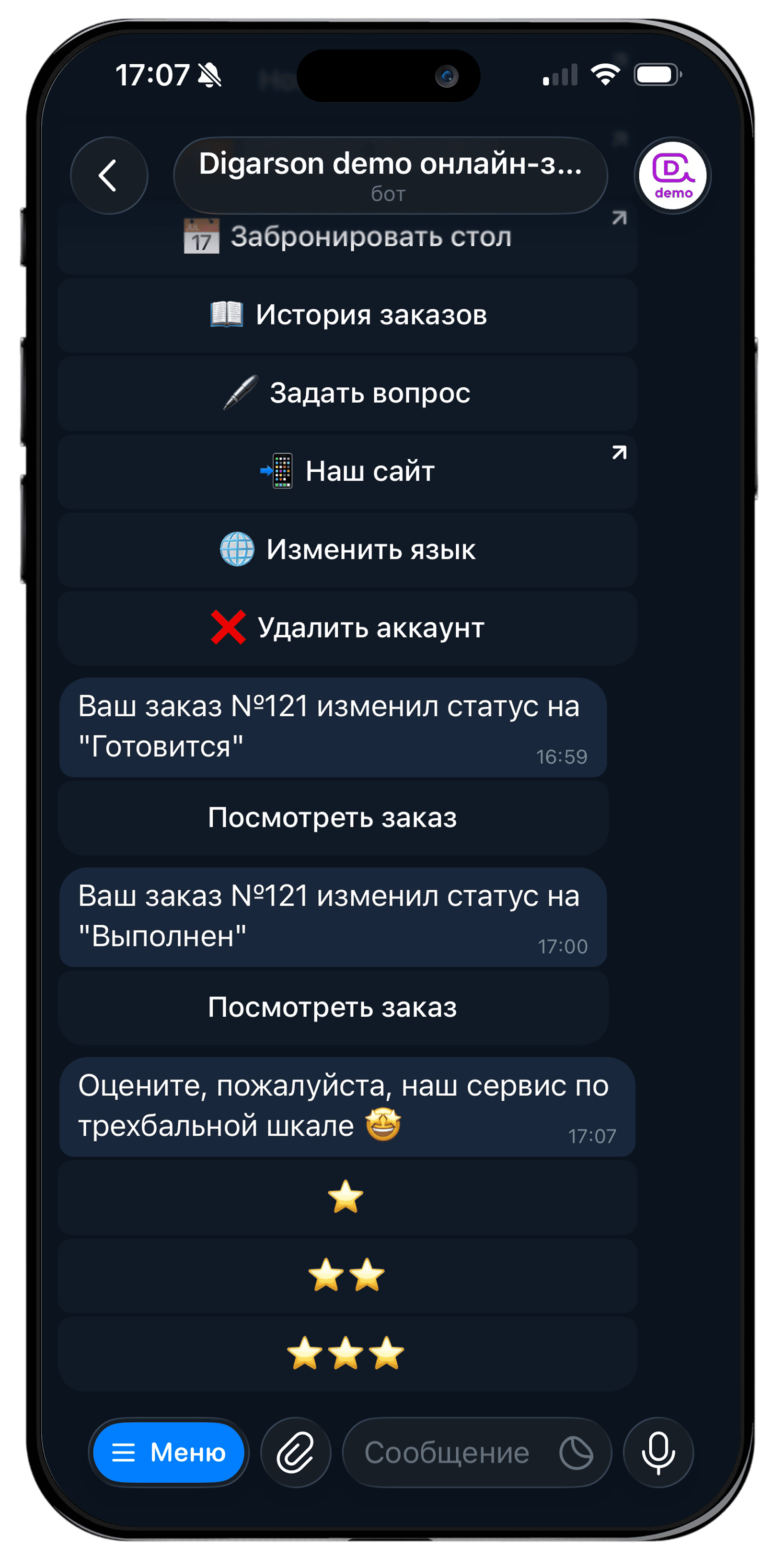 QR-меню + Telegram-бот → всегда актуальное меню, быстрое обслуживание, уведомления об отзывах.